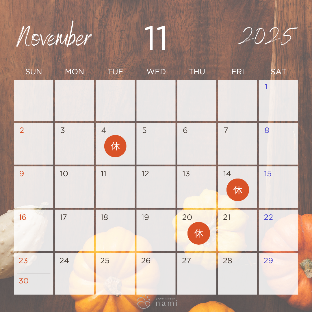 - お知らせ2025年10月30日2025年11月の店休日のお知らせです