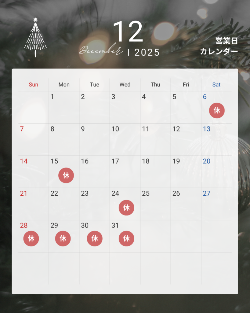 2025年12月の店休日のお知らせ